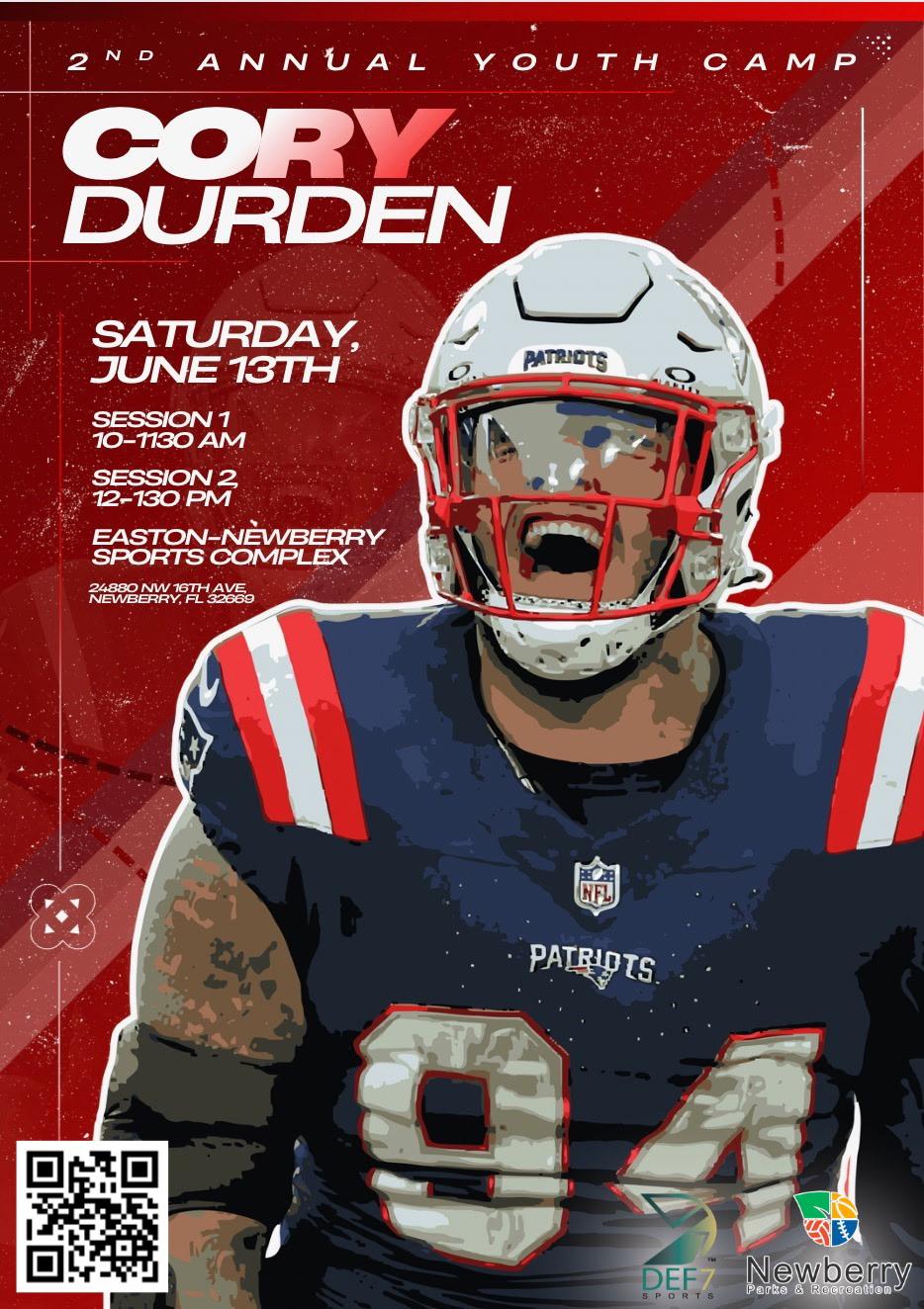 Get ready for an unforgettable day on the field at the 2nd Annual Cory Durden Youth Football Camp! This exciting event gives young athletes the opportunity to train, learn, and have fun alongside Newberry’s own NFL talent, Cory Durden. Campers will build their football fundamentals through hands-on drills, skill development, and high-energy instruction designed for all experience levels. With two convenient sessions available, participants can enjoy focused coaching in a supportive and motivating environment.